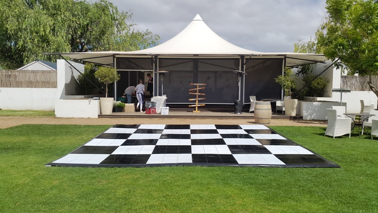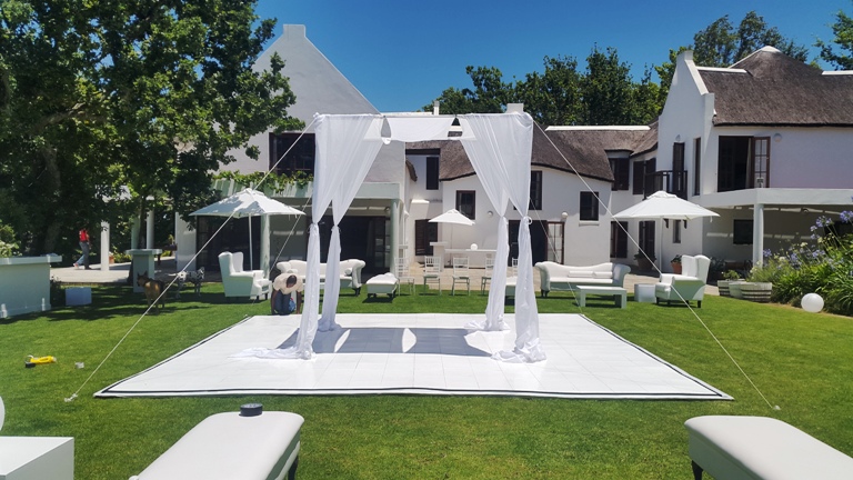 For outdoor Events we utilise a Product that allows the top Floor to be evenly set and easier to walk & dance on. Sand, Grass and Stones are no longer a problem when Planning your Event.